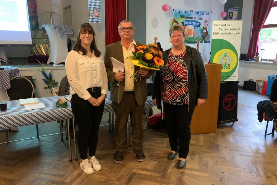 Die ersten vier Jahre unter dem neu gegründeten Verband der Gartenfreunde Südbrandenburg e.V. (VSBB) sind nun schon wieder um und so stand die erste Wahl seit der Gründerversammlung an. Die Mitgliederversammlung fand am 11.10.2025 in Finsterwalde in der Gaststätte „Erholung“ statt. Insgesamt nahmen 80 % der Mitgliedsgartenvereine daran teil und wählten nicht nur erfolgreich einen neuen Vorstand, sondern nahmen wieder interessante Informationen mit nach Hause. Der neue Versicherungspartner, Vertreter der LVM-Versicherung stellten die überarbeiteten Konzepte ab 2026 den Mitgliedern vor. Außerdem wurde durch die Firma Roth Möglichkeiten für Abwassersammelbehälter vorgestellt. Eine Besonderheit an dem Tag war u.a. auch die Ehrung von einigen Gartenfreunden. So wurde Walter Gottschling vom KGV „Am Sportplatz“ e.V. in Missen in seinen wohlverdienten Ruhestand nach über 40 Jahren Vorsitz verabschiedet. Gartenfreund Mario Loeper, Vorsitzender „Jugend“ e.V. in Lübbenau und Gartenfreund David Gruss, Vorsitzender „Stadtrand“ e.V. in Lübbenau wurden jeweils mit der Ehrennadel des Landesverbandes in Bronze für ihre herausragende Tätigkeit im Kleingartenverein geehrt. Gartenfreundin Andrea Metelka erhielt für ihr besonderes Engagement im KGV „Am Baumschulenweg“ e.V. in Doberlug-Kirchhain und ihre Tätigkeit als mehrjährige Vorsitzende sogar die Ehrennadel des Landesverbandes in Silber überreicht. Nach vielen Jahren Vorstandsarbeit im ehemaligen Bezirksverband Calau der Gartenfreunde e.V. und im VSBB wurde Martin Kreuzberg aus Altdöbern ebenfalls in den Ruhestand verabschiedet. Für sein unermüdliches Engagement und seine Treue zur Kleingärtnerei erhielt er die Ehrenmitgliedschaft im VSBB und wurde im Ehrenbuch des VSBB verewigt.
