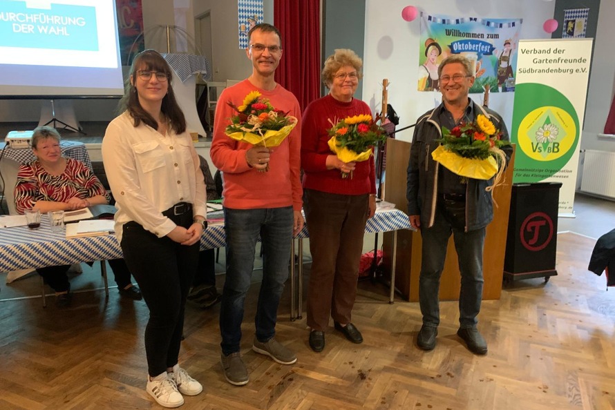 Aber nicht nur die Ehrungen waren ein besonderes Ereignis, sondern auch die Wahl des neuen Vorstandes. Frau Claudia Schlegel aus Elsterwerda wurde von den Mitgliedern als 1. Vorsitzende erneut bestätigt. Als 2. Vorsitzender wurde Holger Kesselschläger aus Finsterwalde und als 3. Vorsitzender Frank Semann aus Calau gewählt. Das Amt des Schatzmeisters übernimmt Regina Schuppe aus Elsterwerda, die jahrelang bereits Kassierer im ehemaligen KV Bad Liebenwerda war. Als Verbandsgartenfachberater wurde Jörg Schlegel aus Elsterwerda wiedergewählt. Frau Elke Schulz aus Lübbenau wird die Vorstandsarbeit als Schriftführerin unterstützen und Diana Fetter aus Lübbenau sowie Nico Schöne aus Bad Liebenwerda arbeiten als Beisitzer im VSBB mit. Auch die Revision bekommt einen neuen „Chef“. Neben Elke Vogt aus Altdöbern und Michael Lehnshack aus Calau, welche wiedergewählt wurden, unterstützt Roland Müller aus Finsterwalde als Vorsitzender der Kassenprüfer die Truppe. Nach einem leckeren Mittag und einem konstruktiven Austausch ging der für den VSBB erfolgreiche Tag zu Ende.